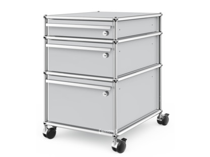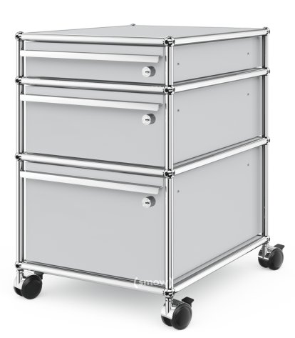 Caisson à roulettes USM Haller 3 tiroirs Type 2, Tous les compartiments avec serrures, Argent mat USM