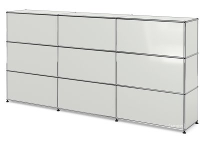 Entretien Nettoyer les surfaces chromées, en métal et laquées époxy avec un chiffon en coton ou le tissu d'entretien USM Haller humide et soyeux, puis essuyer. Un nettoyant de vitre standard et/ou de l'alcool à brûler dilué dans de l'eau (ratio 10:1) permettent de venir à bout des taches tenaces.