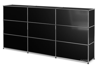 Comptoir d’accueil USM Haller version 1, Noir graphite RAL 9011, 225 cm (3 éléments), 35 cm