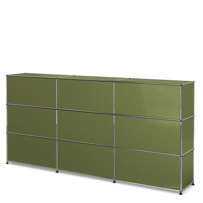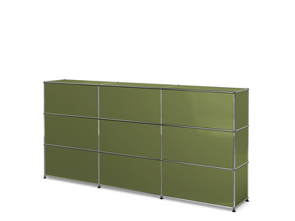 Comptoir d’accueil USM Haller version 1, Vert olive RAL 6003, 225 cm (3 éléments), 35 cm