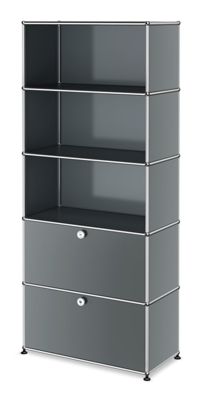 Étagère à dossiers USM Haller M, personnalisable, Gris moyen RAL 7005, Ouvert, Ouvert, Avec porte abattante, Avec porte coulissante