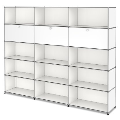 Étagère à dossiers XL USM Haller, personnalisable, Blanc pur RAL 9010, Avec 3 portes abattantes, Ouvert, Ouvert, Ouvert