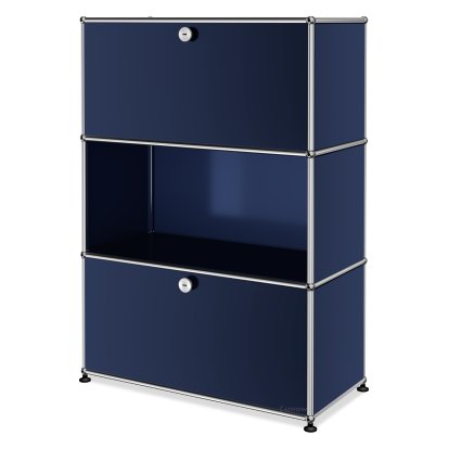 Meuble haut Highboard M USM Haller, personnalisable, Bleu acier RAL 5011, Avec porte abattante, Ouvert, Avec porte coulissante