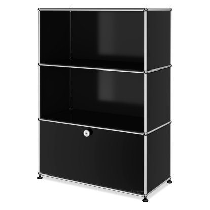 Meuble haut Highboard M USM Haller, personnalisable, Noir graphite RAL 9011, Ouvert, Ouvert, Avec porte abattante