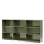 Meuble haut XL avec 3 portes vitrées USM Haller, Avec poignée avec serrure, Vert olive RAL 6003