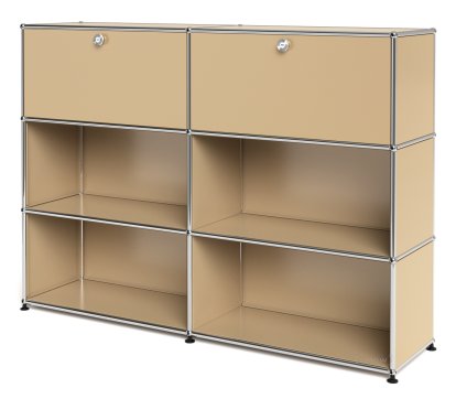 Meuble haut Highboard L USM Haller, personnalisable, Beige USM, Avec 2 portes abattantes, Ouvert, Ouvert