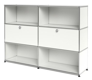 Meuble haut Highboard L USM Haller, personnalisable, Blanc pur RAL 9010, Ouvert, Avec 2 portes abattantes, Ouvert