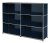 Meuble haut Highboard L USM Haller, personnalisable, Bleu acier RAL 5011, Ouvert, Ouvert, Ouvert