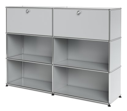 Meuble haut Highboard L USM Haller, personnalisable, Gris clair RAL 7035, Avec 2 portes abattantes, Ouvert, Ouvert