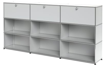 Meuble haut Highboard XL USM Haller, personnalisable, Argent mat USM, Avec 3 portes abattantes, Ouvert, Ouvert