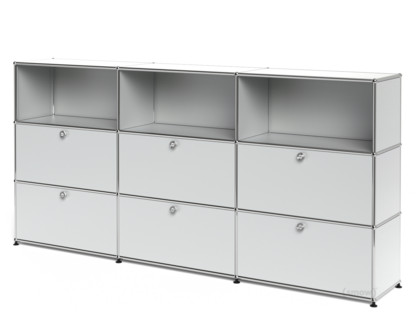 Meuble haut Highboard XL USM Haller, personnalisable, Argent mat USM, Ouvert, Avec 3 portes abattantes, Avec 3 portes abattantes