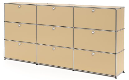 Meuble haut Highboard XL USM Haller, personnalisable, Beige USM, Avec 3 portes abattantes, Avec 3 portes abattantes, Avec 3 portes abattantes