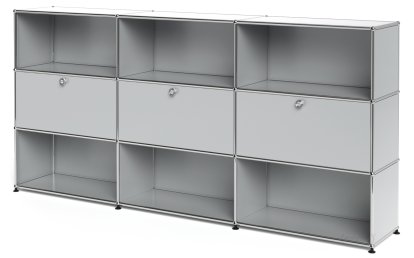 Meuble haut Highboard XL USM Haller, personnalisable, Gris clair RAL 7035, Ouvert, Avec 3 portes abattantes, Ouvert