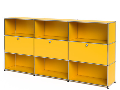Meuble haut Highboard XL USM Haller, personnalisable, Jaune or RAL 1004, Ouvert, Avec 3 portes abattantes, Ouvert