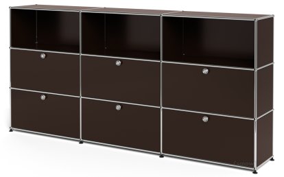Meuble haut Highboard XL USM Haller, personnalisable, Marron USM, Ouvert, Avec 3 portes abattantes, Avec 3 portes coulissantes