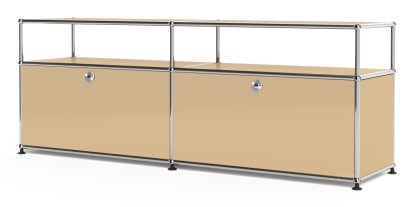 Meuble bas Lowboard L USM Haller avec rehausse, personnalisable, Beige USM, Avec 2 portes abattantes, Sans passe-câbles
