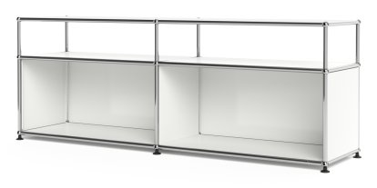 Meuble bas Lowboard L USM Haller avec rehausse, personnalisable Blanc pur RAL 9010|Ouvert|Sans passe-câbles