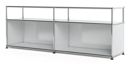 Meuble bas Lowboard L USM Haller avec rehausse, personnalisable, Gris clair RAL 7035, Ouvert, Sans passe-câbles