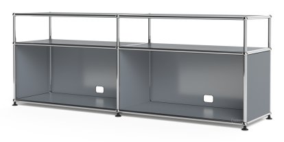 Meuble bas Lowboard L USM Haller avec rehausse, personnalisable, Gris moyen RAL 7005, Ouvert, Avec passe-câbles au centre bas