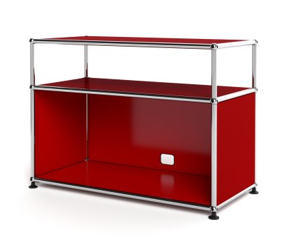Meuble bas Lowboard M USM Haller avec rehausse, personnalisable Rouge rubis USM|Avec  porte coulissante|Avec passe-câbles au centre bas