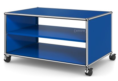 Meuble bas Lowboard TV sur roulettes USM Haller, Sans porte abattante et sans paroi arrière, Bleu gentiane RAL 5010