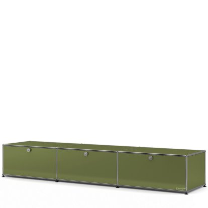 Meuble bas Lowboard XL USM Haller, personnalisable, Vert olive RAL 6003, Avec 3 portes abattantes, 50 cm