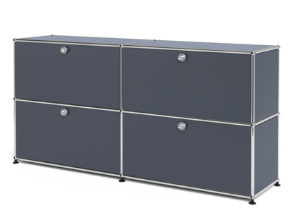 Meuble de rangement Sideboard L USM Haller, personnalisable, Anthracite RAL 7016, Avec 2 portes abattantes, Avec 2 portes coulissantes