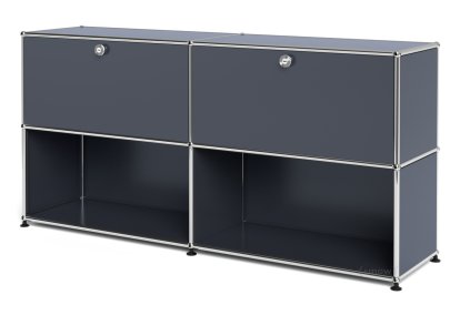 Meuble de rangement Sideboard L USM Haller, personnalisable, Anthracite RAL 7016, Avec 2 portes abattantes, Ouvert