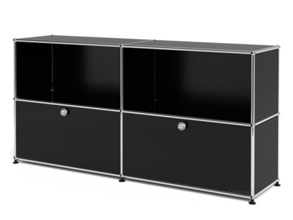 Meuble de rangement Sideboard L USM Haller, personnalisable, Noir graphite RAL 9011, Ouvert, Avec 2 portes abattantes