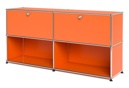 Meuble de rangement Sideboard L USM Haller, personnalisable, Orange pur RAL 2004, Avec 2 portes abattantes, Ouvert