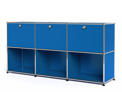 Meuble mixte Sideboard 50 USM Haller, personnalisable, Bleu gentiane RAL 5010, Avec 3 portes abattantes, Ouvert