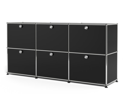 Meuble mixte Sideboard 50 USM Haller, personnalisable, Noir graphite RAL 9011, Avec 3 portes abattantes, Avec 3 portes abattantes