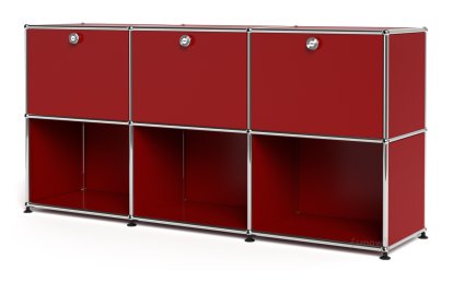 Meuble mixte Sideboard 50 USM Haller, personnalisable, Rouge rubis USM, Avec 3 portes abattantes, Ouvert