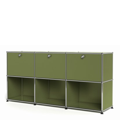 Meuble mixte Sideboard 50 USM Haller, personnalisable, Vert olive RAL 6003, Avec 3 portes abattantes, Ouvert