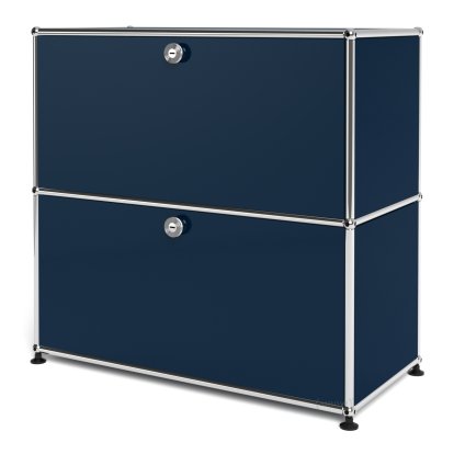 Meuble mixte Sideboard M USM Haller, personnalisable, Bleu acier RAL 5011, Avec porte abattante, Avec porte coulissante