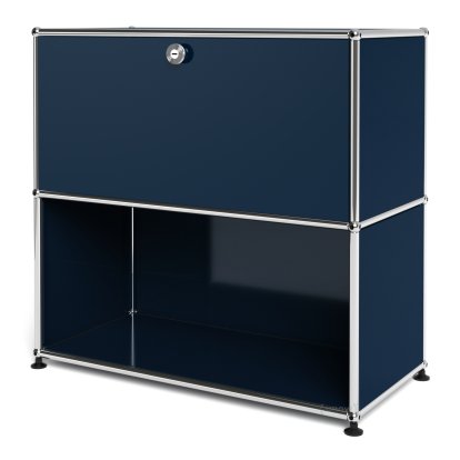 Meuble mixte Sideboard M USM Haller, personnalisable, Bleu acier RAL 5011, Avec porte abattante, Ouvert