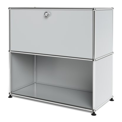 Meuble mixte Sideboard M USM Haller, personnalisable, Gris clair RAL 7035, Avec porte abattante, Ouvert