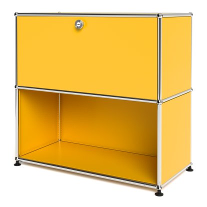 Meuble mixte Sideboard M USM Haller, personnalisable, Jaune or RAL 1004, Avec porte abattante, Ouvert