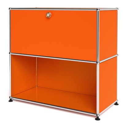 Meuble mixte Sideboard M USM Haller, personnalisable, Orange pur RAL 2004, Avec porte abattante, Ouvert
