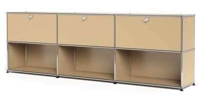 Meuble mixte Sideboard XL USM Haller, personnalisable, Beige USM, Avec 3 portes abattantes, Ouvert