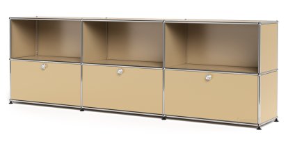 Meuble mixte Sideboard XL USM Haller, personnalisable, Beige USM, Ouvert, Avec 3 portes abattantes