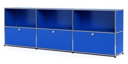 Meuble mixte Sideboard XL USM Haller, personnalisable, Bleu gentiane RAL 5010, Ouvert, Avec 3 portes abattantes