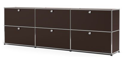 Meuble mixte Sideboard XL USM Haller, personnalisable, Marron USM, Avec 3 portes abattantes, Avec 3 portes coulissantes