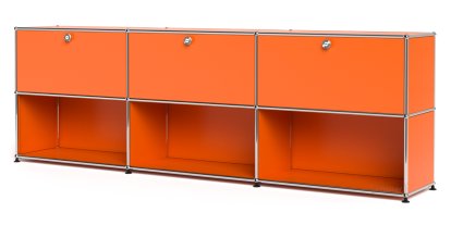 Meuble mixte Sideboard XL USM Haller, personnalisable, Orange pur RAL 2004, Avec 3 portes abattantes, Ouvert