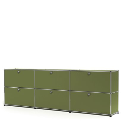 Meuble mixte Sideboard XL USM Haller, personnalisable, Vert olive RAL 6003, Avec 3 portes abattantes, Avec 3 portes coulissantes