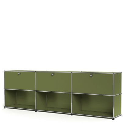Meuble mixte Sideboard XL USM Haller, personnalisable, Vert olive RAL 6003, Avec 3 portes abattantes, Ouvert