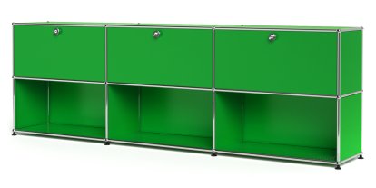 Meuble mixte Sideboard XL USM Haller, personnalisable, Vert USM, Avec 3 portes abattantes, Ouvert