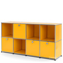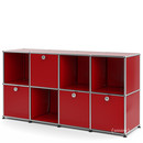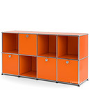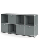 Le buffet USM Haller Kids de Fritz Haller & Paul Schärer sert de rangement pratique et offre suffisamment de place pour les jouets, les peluches et autres objets. Les meubles colorés USM pour enfants, disponibles dans de nombreuses couleurs USM vives et variées, s'avèrent être une aide fonctionnelle, en particulier dans les chambres d'enfants. Le meuble USM Sideboard pour enfants dispose de huit compartiments, dont quatre avec portes à rabat, offrant un espace de rangement généreux. Dans la version monochrome, les portes à rabat sont situées au niveau des compartiments inférieurs, dans la version colorée, elles sont décalées. Comme tous les autres meubles USM, les meubles pour enfants ont été fabriqués selon le principe modulaire USM caractéristique. Des tubes métalliques forment la structure, des parois en métal servent de revêtement et des boules chromées maintiennent tout ensemble. Les meubles USM Haller sont très populaires dans le monde entier et sont devenus au fil des ans un véritable classique du design.