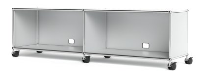 Meuble bas Lowboard TV/Hi-Fi USM Haller, personnalisable, Argent mat USM, Avec 2 portes abattantes, Avec passe-câbles au centre bas