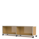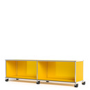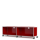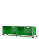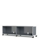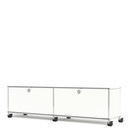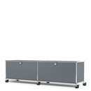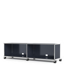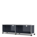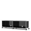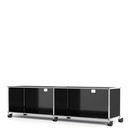 Meuble bas Lowboard TV/Hi-Fi USM Haller, personnalisable, Noir graphite RAL 9011, Avec 2 portes abattantes, Avec passe-câbles au centre bas